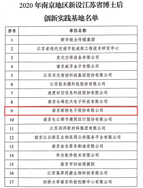 日前,江蘇省人力資源和社會保障廳發(fā)布通知(蘇人社函[2020]374號),南京地區(qū)共有17家單位獲批設(shè)立江蘇省博士后創(chuàng)新實(shí)踐基地,南京新聯(lián)電子股份有限公司名列其中。此次設(shè)立省級博士后創(chuàng)新實(shí)踐基地,將為新聯(lián)電子推進(jìn)自主創(chuàng)新、加強(qiáng)校企合作、引進(jìn)和培養(yǎng)高層次人才,提供重要人才平臺和創(chuàng)新平臺。